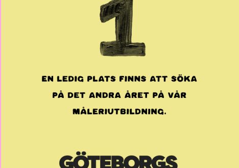 På grund av sen antagning till högskolan så har du chansen att gå det andra året av två på Göteborgs Konstskolas Måleriutbildning. Skicka intresseanmälan till info@gbgkonstskola.se så skickar vi dig ansökningsformulär.