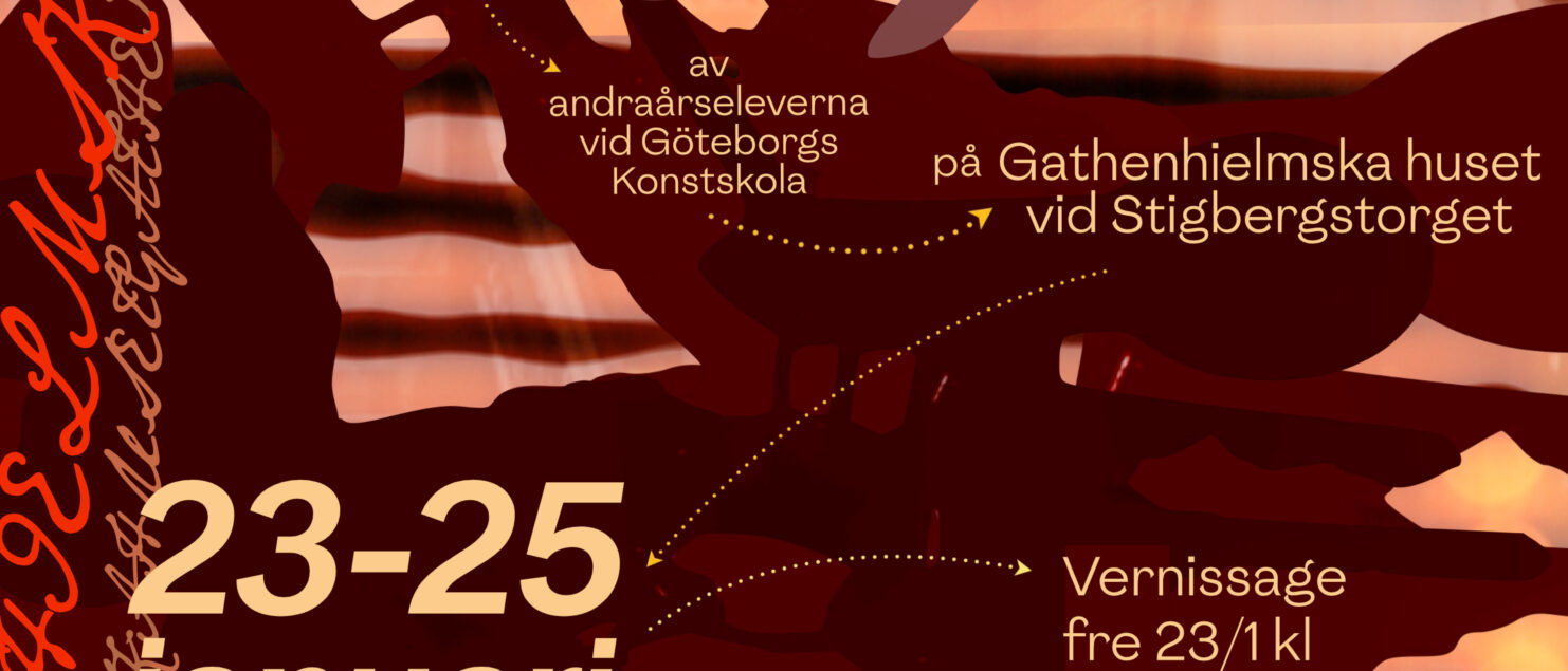 Andraårs eleverna på Göteborgs Konstskolas linjer i Skulptur, Grafik och Måleri ställer ut i de unika lokalerna på Gathenhielmska huset vid Stigbergstorget Vernissage fredag 23/1 kl 17-20. Utställningen pågår 23 – 25 januari kl. 11- 17