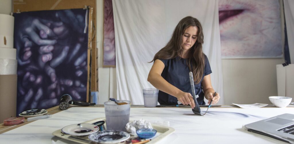 Sommarkursen Transparens riktar sig till de som testat akvarell och vill fördjupa sig i hur man skapar stämningar, ljus och distans i en akvarell och hur man går upp i skala. Vi kommer tillsammans titta och diskutera konstverk som rör transparens och hur man praktiskt skapar det. Kanske har eleven en egen idé som den vill ha hjälp med att genomföra. Du får gärna ha med dig bilder och fotografier av miljöer, rum, platser och människor som du vill arbeta vidare med i ateljén. Kursen kombinerar gemensamma genomgångar, praktiska övningar och individuellt arbete. Martha delar med sig av sina tekniker och sin konstnärliga process, med fokus på hur man bygger upp en målning steg för steg och hur man fångar stämning, rörelse och närvaro i bilden.
